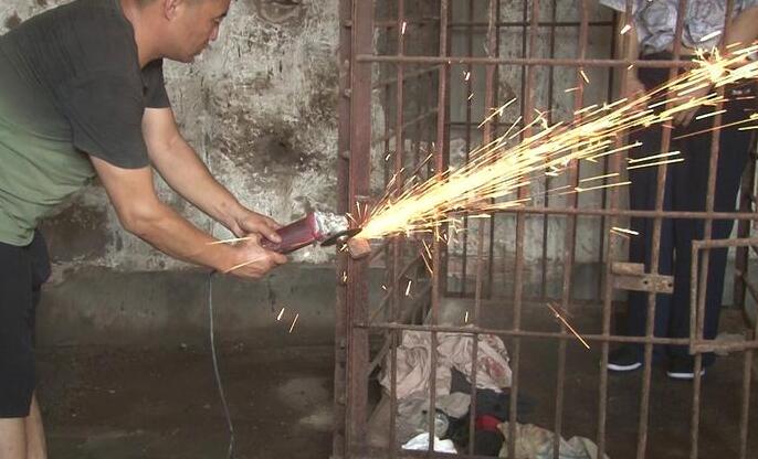鉴于铁笼的铁索已经生锈,邻居们找来了电锯准备切断钢筋,打开一扇铁笼的门将他救出来,外面正值阴天,虽然光线不强烈,但是马新亮几年未见外面的世界,眼睛还有些许不适,鉴于刚才在笼中的躁狂表现,医生和护理人员将他进行约束,并固定在车里。